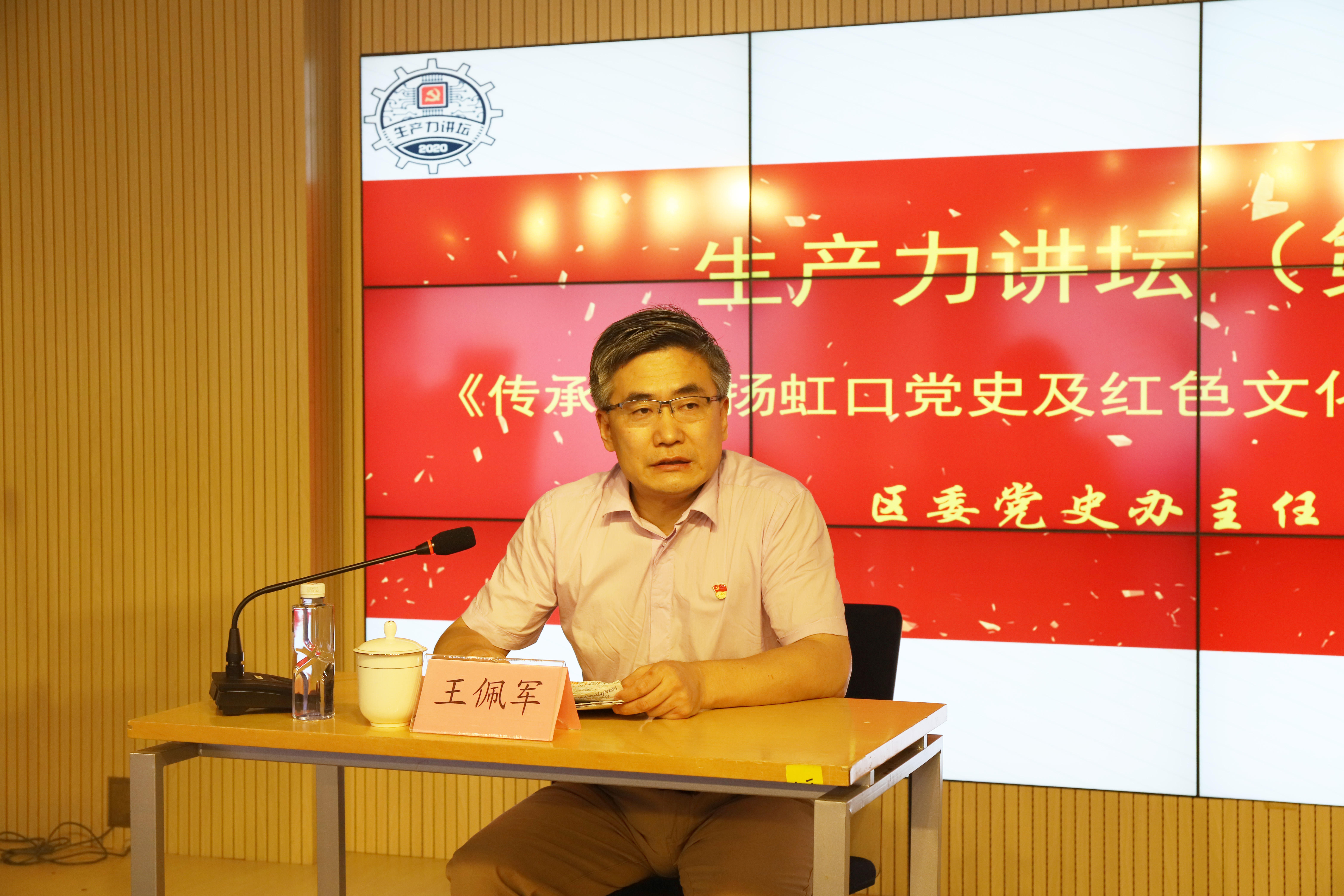 在活動中,虹口區委黨史辦主任王佩軍作《傳承和弘揚虹口黨史及紅色文化資源蘊含的價值基因》專題黨課,從虹口黨史及紅色文化資源的基本概況、近期保護研究與開發利用、傳承和弘揚其蘊含的價值基因三方面進行了精彩的闡述。
