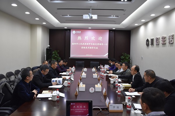 1月16日,中國能源工程集團總裁段玉林、高級副總裁李楊在集團總部會見了德陽市人民政府副市長徐光勇一行。德陽市旌陽區委副書記、區長陳天航,德陽市經信委主任黃琦等政府領導陪同調研。