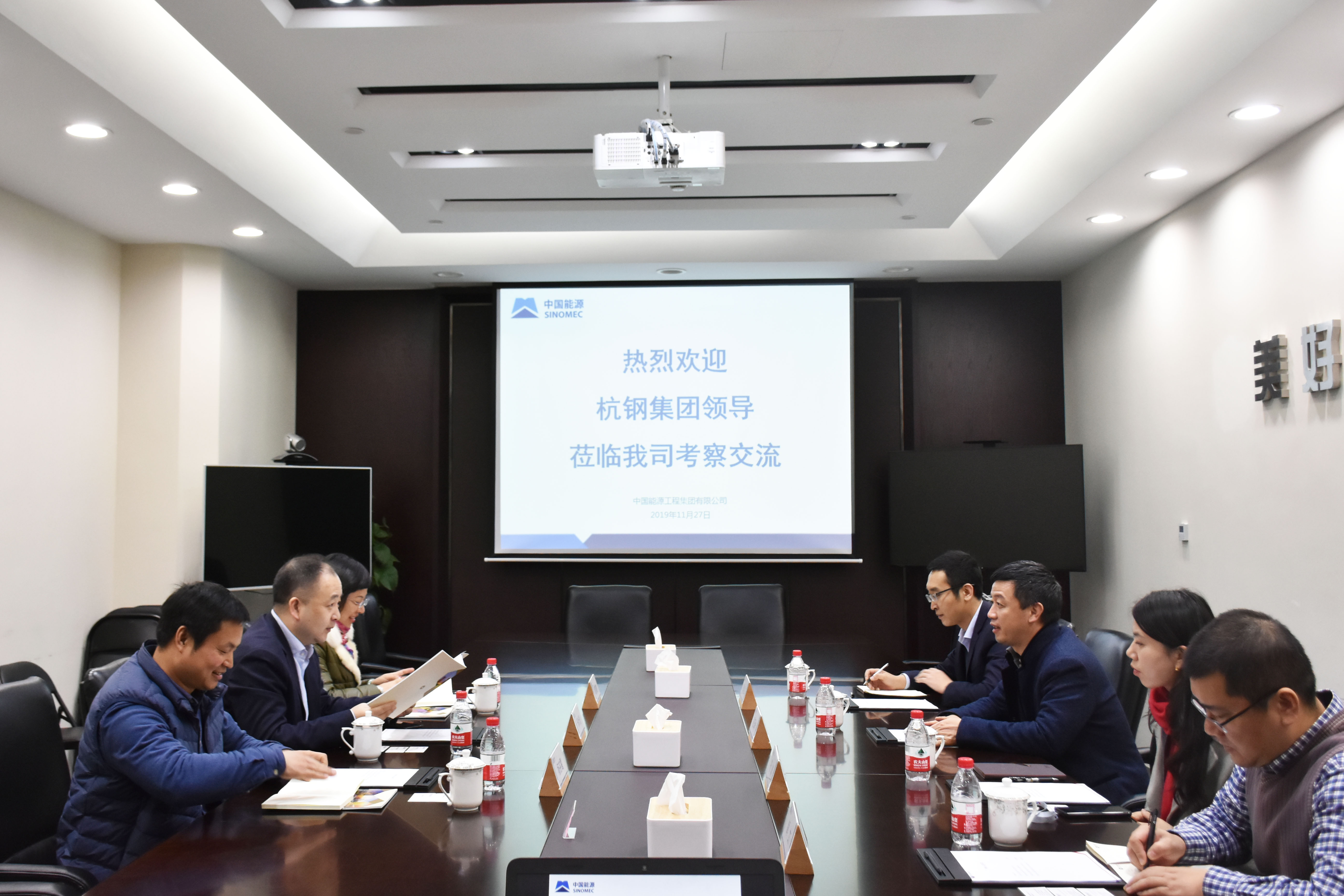 11月27日,杭鋼半山基地管委會黨委書記、浙江杭鋼智谷科技有限公司董事長樂葉俊一行蒞臨中國能源工程集團考察交流。中國能源工程集團總經理段玉林等領導出席會議。