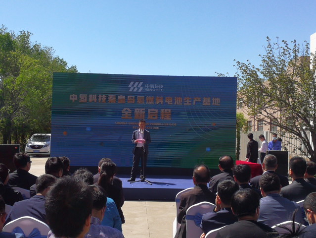 中國能源工程集團總經理段玉林致辭。他說:“中氫科技氫燃料電池項目的投產僅僅是一個開始,未來中氫科技將圍繞提升產能、研發新品、迭代工藝等方向不斷發展,在氫能應用、示范運行、氫能儲運裝置、5G電源、液氫制備工藝等方面進行合作和投資開發。企業將立足秦皇島,以擁有自主知識產權的氫燃料電池核心技術承擔起氫能源產業鏈的關鍵作用,推動秦皇島氫能源產業發展和聚集,服務河北省氫能源產業發展戰略規劃落地實施、服務全國氫能源產業核心裝備供應。”